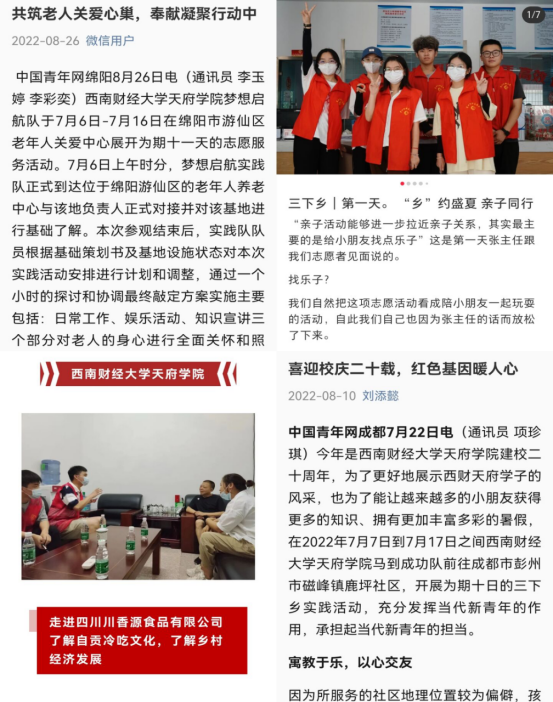 西南财经大学天府学院2022暑期“三下乡”社会实践活动得到多家媒体报道