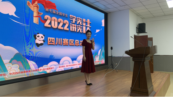 陈艺蓥菲同学凭借极强的应变能力、流畅的表达技巧与其扎实的宪法理论基础,将一个个宪法故事、一条条宪法解释生动地传递给了每一位观众,准确诠释了公民恪守宪法原则、弘扬宪法精神、履行宪法使命的重要意义。同时,她也展现出了西财天府学院学子作为新时代青年大学生知法、懂法、学法、用法的的良好形象。