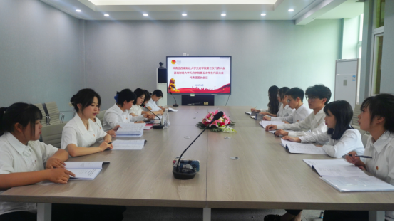 6月3日下午,各代表团分团会议在教学楼教室,学习,讨论审议团委、学生会工作报告,讨论审议修订后的《西南财经大学天府学院学生会章程》并通过大会《选举办法(草案)》,各代表讨论推荐或自荐大会总监票人、总计票人、监票人、计票人建议名单,酝酿新一届团委委员候选人预备人选名单、学生委员会委员候选人预备人选名单并讨论选票填写说明。